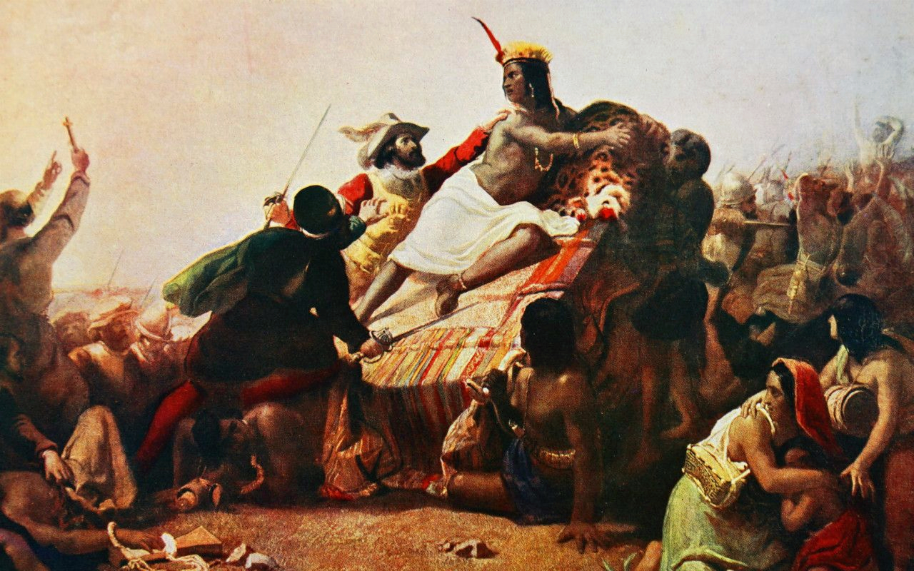 1532年11月、スペインの征服者フランシスコ・ピサロはわずか168人のスペイン兵を引き連れて南米ペルーに上陸し、インカ帝国皇帝アタワルパを奇襲。これを征服しました。インカ側の兵士は数万人いたにもかかわらず、です。